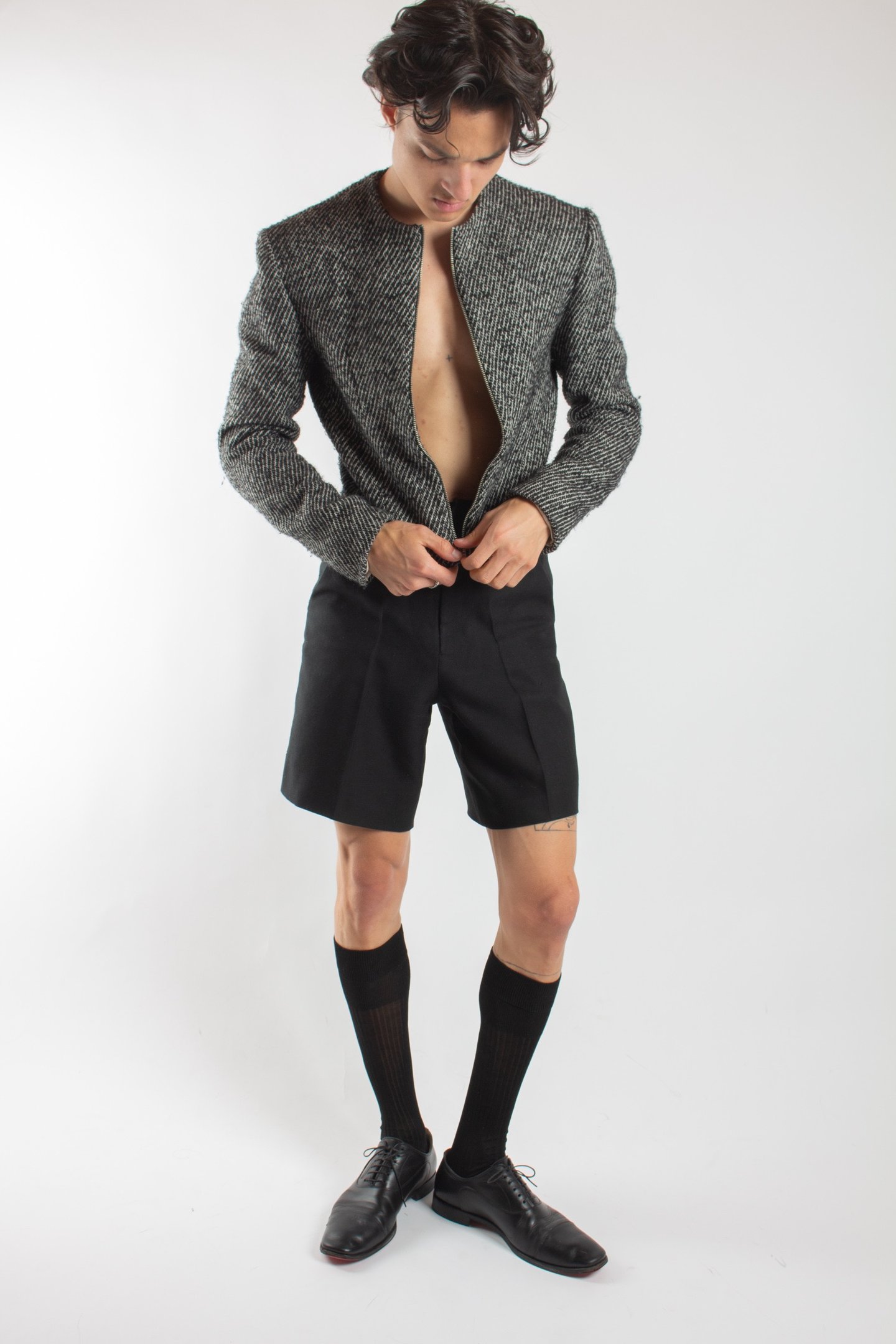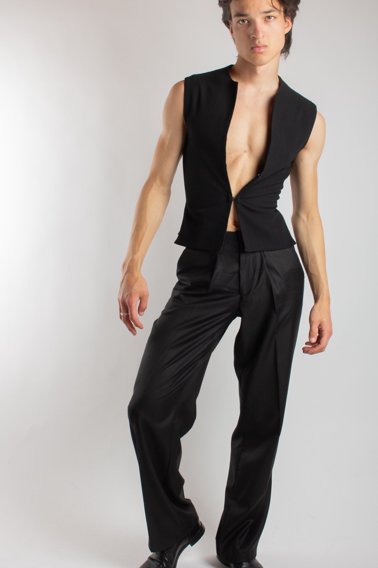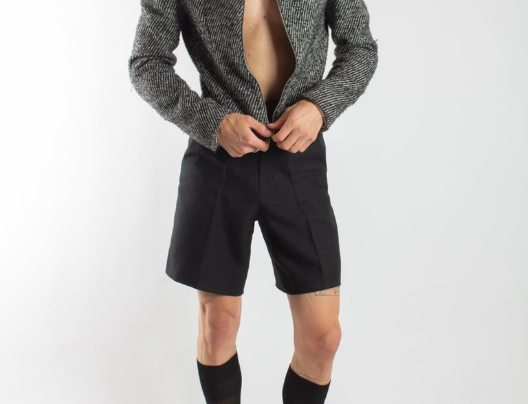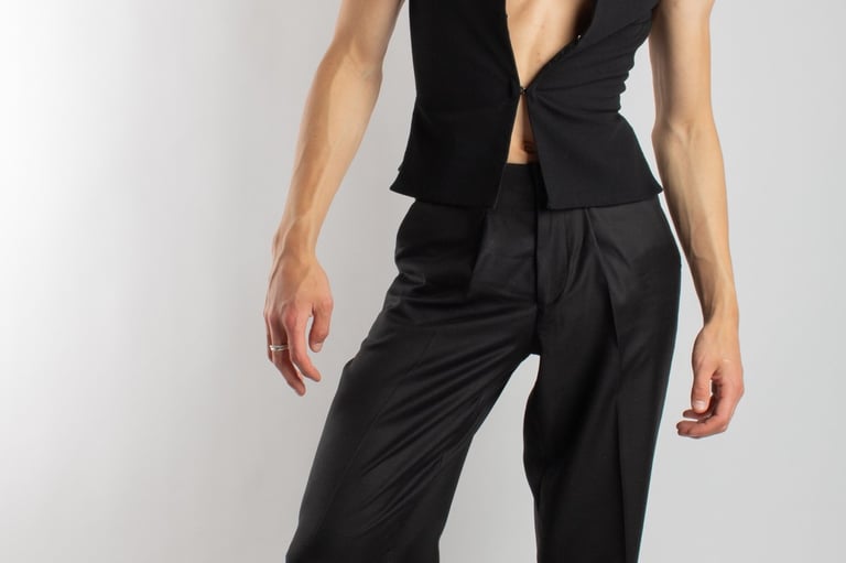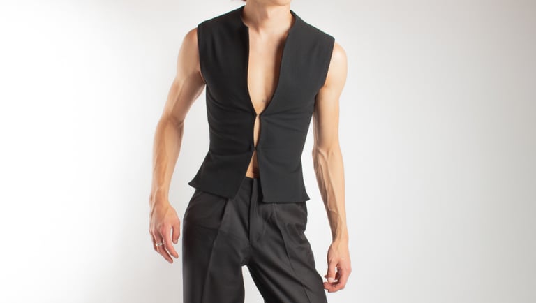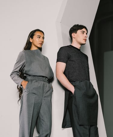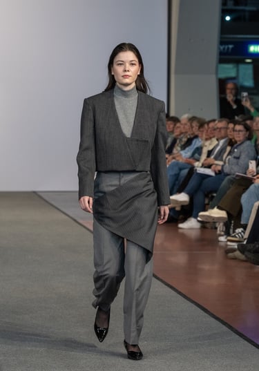Adaptive Elegance explores multifunctional garments defined by precise pattern cutting and refined tailoring. Each piece is developed to shift in form through construction alone, allowing for variation without the need for additional elements. Rooted in a restrained, monochrome aesthetic, the collection focuses on clarity, structure, and a considered approach to versatility.