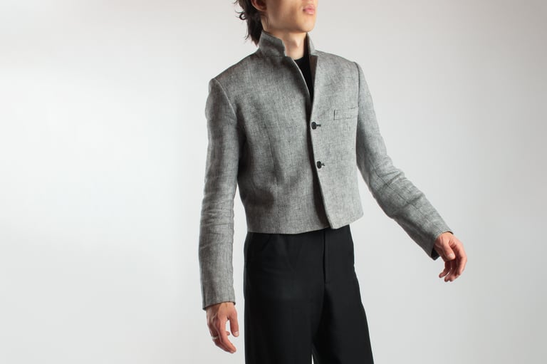 A selection of independent works that explore pattern construction, tailoring, and different materials like merino wool and cashmere. Each piece demonstrates a considered approach to silhouette, proportion, and craftsmanship.